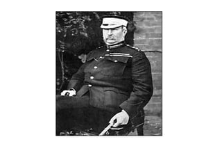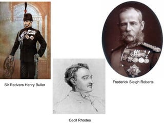 The document provides background information on the First and Second Anglo-Boer Wars between the British and the Boers in South Africa. It discusses key figures on both sides, including Paul Kruger and Cecil Rhodes. It outlines the political situation preceding each war and highlights some major battles, such as Majuba Hill and Spion Kop. It also describes the aftermath of the wars, including Boer guerrilla warfare, the British use of scorched earth tactics, and the high death toll in British-run concentration camps.