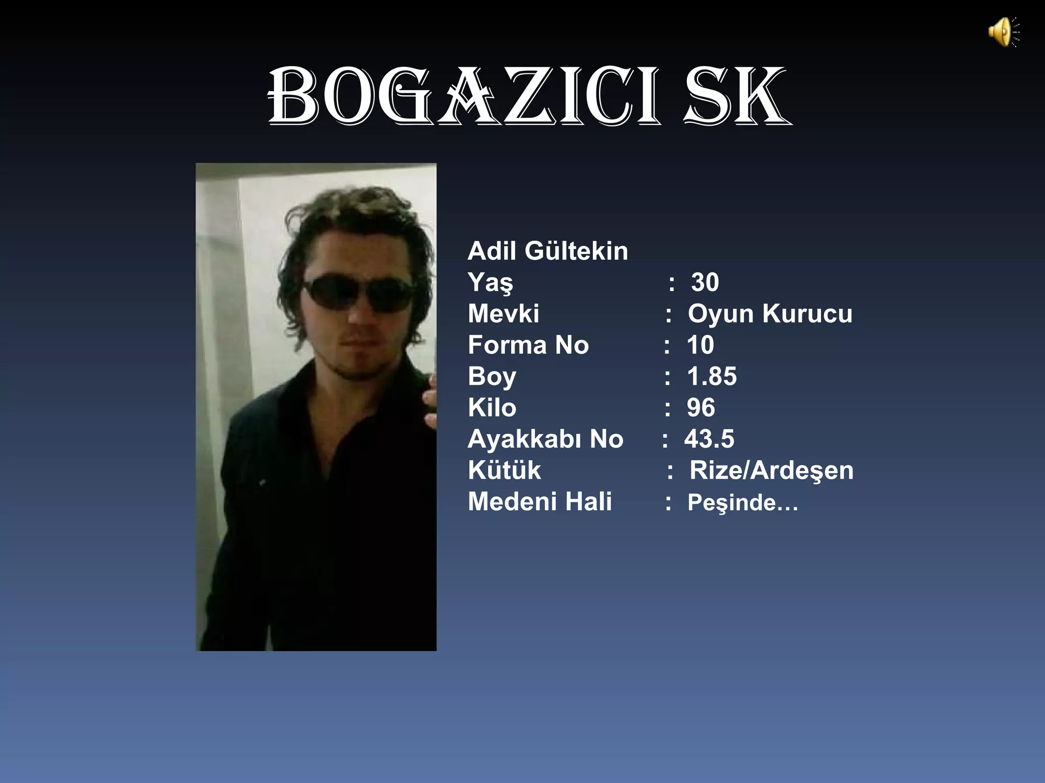 BOgAZICI SK AdilGültekin Yaş : 30 Mevki : Oyun Kurucu Forma No : 10 Boy : 1.85 Kilo : 96 Ayakkabı No : 43.5 Kütük : Rize/Ardeşen Medeni Hali : Peşinde…