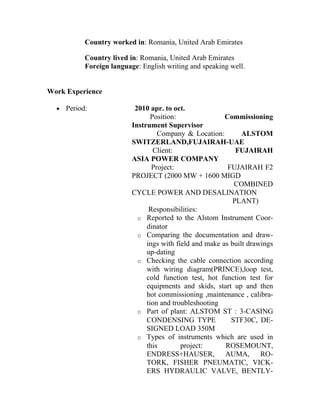 Bogdan Tudor is an experienced Instrument Supervisor from Romania with over 20 years of experience in instrumentation roles including commissioning, maintenance, and project work. He has worked on large power and desalination plants in the United Arab Emirates and Romania for companies such as Alstom, Mitsubishi, and ABB. His experience includes working with a variety of instrumentation devices and control systems.