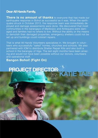 A pdf report on the completion of the Bohol Earthquake Response.