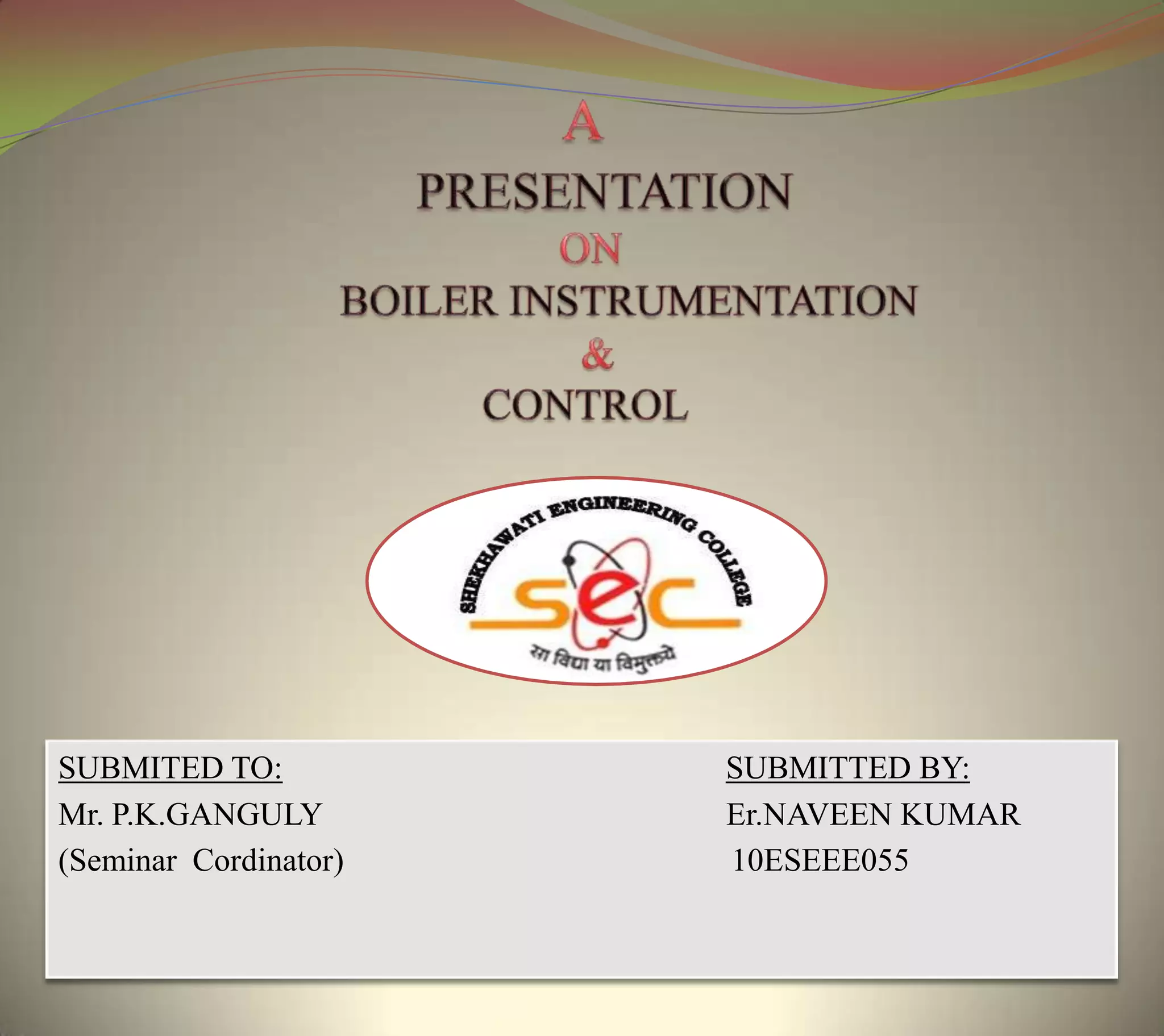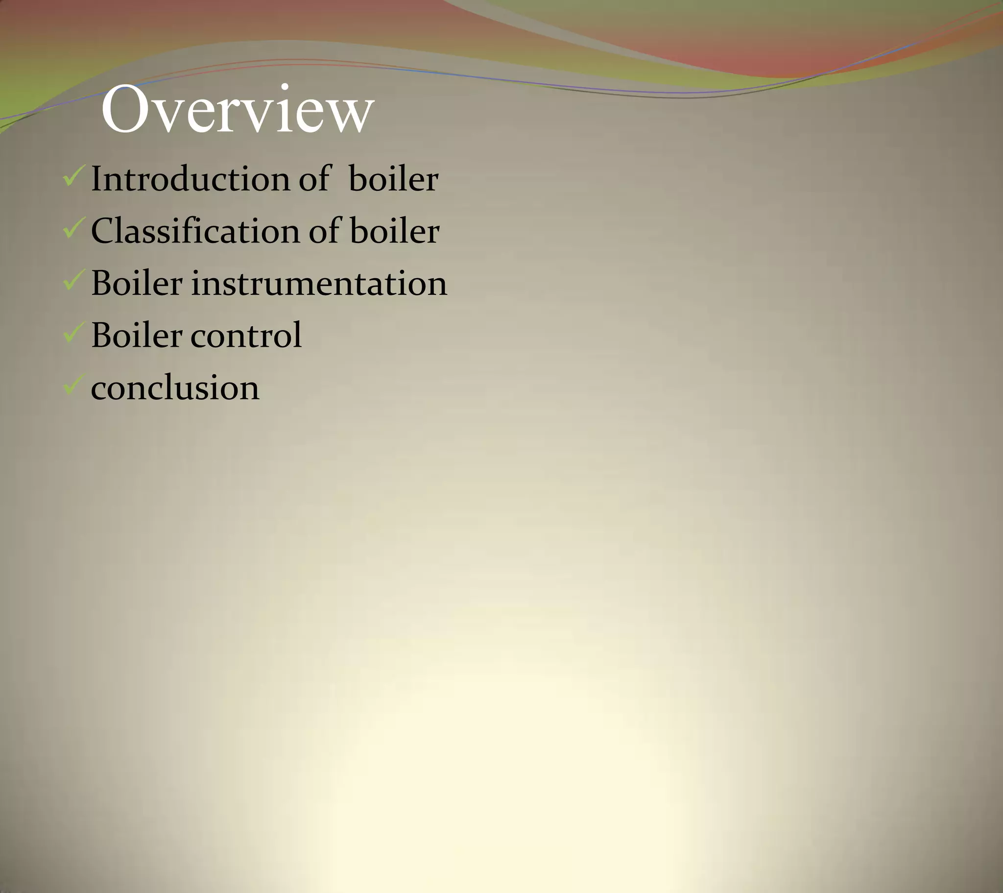 This document discusses boiler instrumentation and control. It begins with an introduction to boilers, their classification into fire tube and water tube boilers, and an overview of boiler instrumentation and control systems. It then describes the key components of boiler instrumentation including flow meters, furnace TV systems. It provides diagrams of fire tube and water tube boiler designs. It details the major control loops for combustion control and feedwater control and concludes with advantages and disadvantages of boiler control systems.