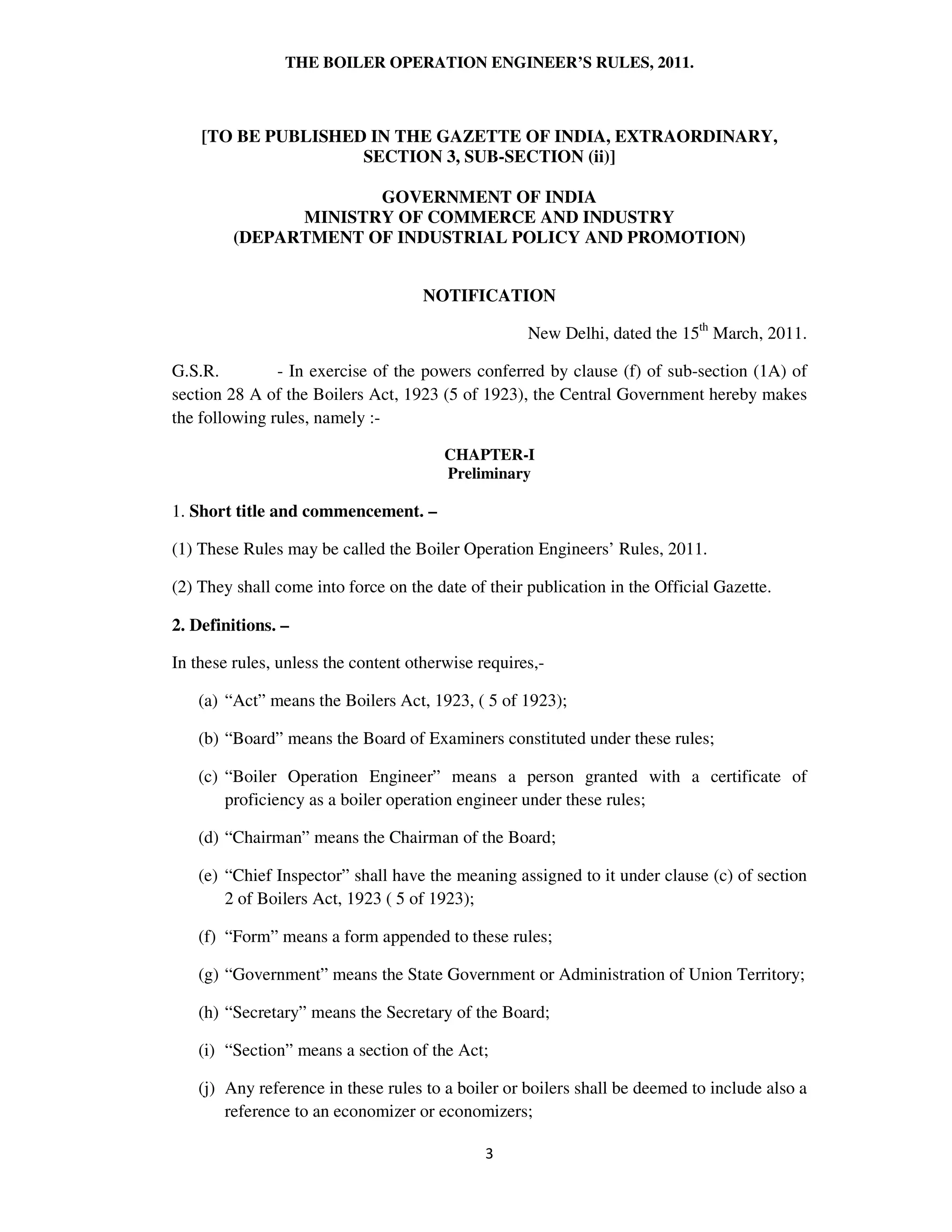 The document outlines The Boiler Operation Engineer's Rules from 2011. It establishes rules for operating boilers safely and outlines requirements for boiler operation engineers. Key points include: