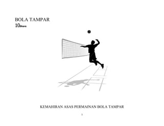 Dokumen tersebut memberikan penjelasan mengenai kemahiran dasar dalam permainan bola tampar yaitu hantaran, servis, merejam, dan mengadang. Dijelaskan cara-cara melakukan keempat kemahiran tersebut dengan gambaran posisi, gerakan, dan kontak yang tepat.