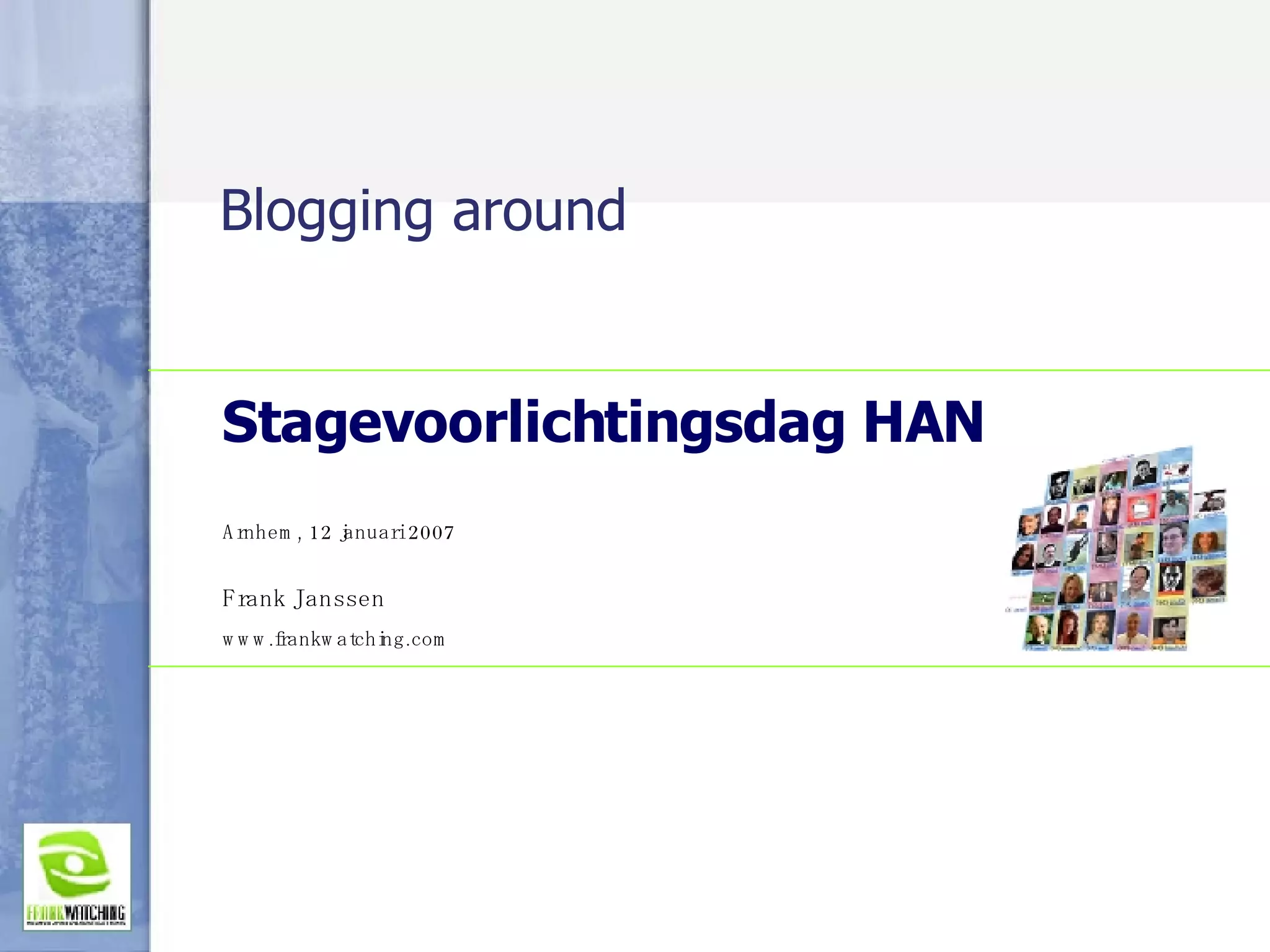Vragen? Hartelijk dank!Voor meer informatie: Frank Janssen Telefoon : +31 (0)6 3832 9038 E-mail : [email_address] Websites : www.frankwatching.com www.eventblogs.nl