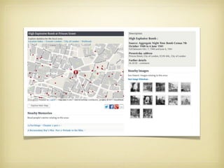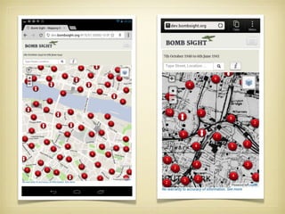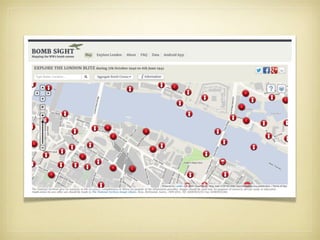 The project maps the London WWII bomb census from October 7, 1940, to June 6, 1941, making historical maps accessible online for researchers and the public. It includes the creation of digital maps, bomb location data, and a mobile web application, enhancing understanding of the bombing's social and economic impacts. The initiative aims to preserve original maps while encouraging broader engagement through tutorials and potential augmented reality applications.
