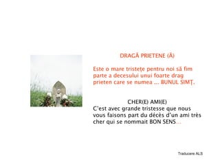 Documentul anunță moartea simbolică a bunului simț, evidențiind cum acesta a fost influențat negativ de schimbările sociale și legislative recente. De asemenea, se menționează impactul dispariției bunului simț asupra valorilor precum adevărul, responsabilitatea și raționamentul, lăsând loc unor atitudini egoiste și victimizante. În cele din urmă, este subliniat că puțini au fost cei care l-au cunoscut cu adevărat, iar amintirea lui poate fi păstrată prin împărtășirea acestui mesaj.