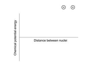 The document discusses molecular structures, emphasizing concepts such as bond energy, chemical potential energy, and the distances between atomic nuclei. It highlights the relationship between electrostatic forces, work done, and the nature of attraction and repulsion in molecular interactions. Overall, it focuses on how these forces contribute to the energy dynamics within molecules.