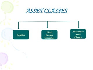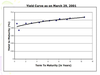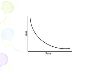 The document discusses various types of fixed income securities including bonds, their key features such as coupon rate, maturity date, and yield. It also covers bond market sectors such as the domestic bond market, foreign bond market, and international bond market. Various government bond issuers from countries around the world are also outlined.