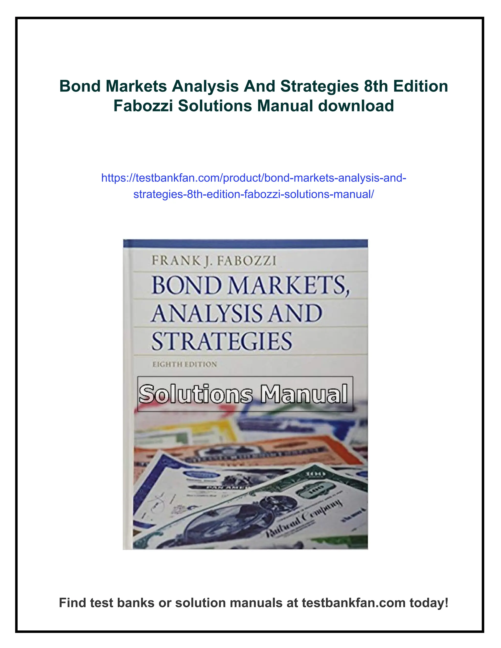 Bond Markets Analysis And Strategies 8th Edition Fabozzi Solutions Manual