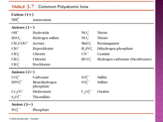 The document discusses several key concepts in chemistry including: