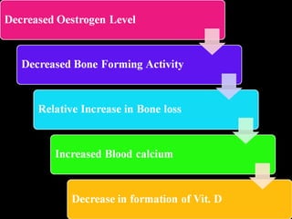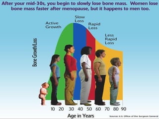 Osteoporosis is a disease characterized by reduced bone density and quality, leading to an increased risk of fractures, particularly after menopause. Diagnosis is typically done using a DEXA scan, which measures bone mass and categorizes results from normal to severe osteoporosis. Prevention and treatment strategies include calcium and vitamin D supplementation, as well as maintaining bone health throughout life.