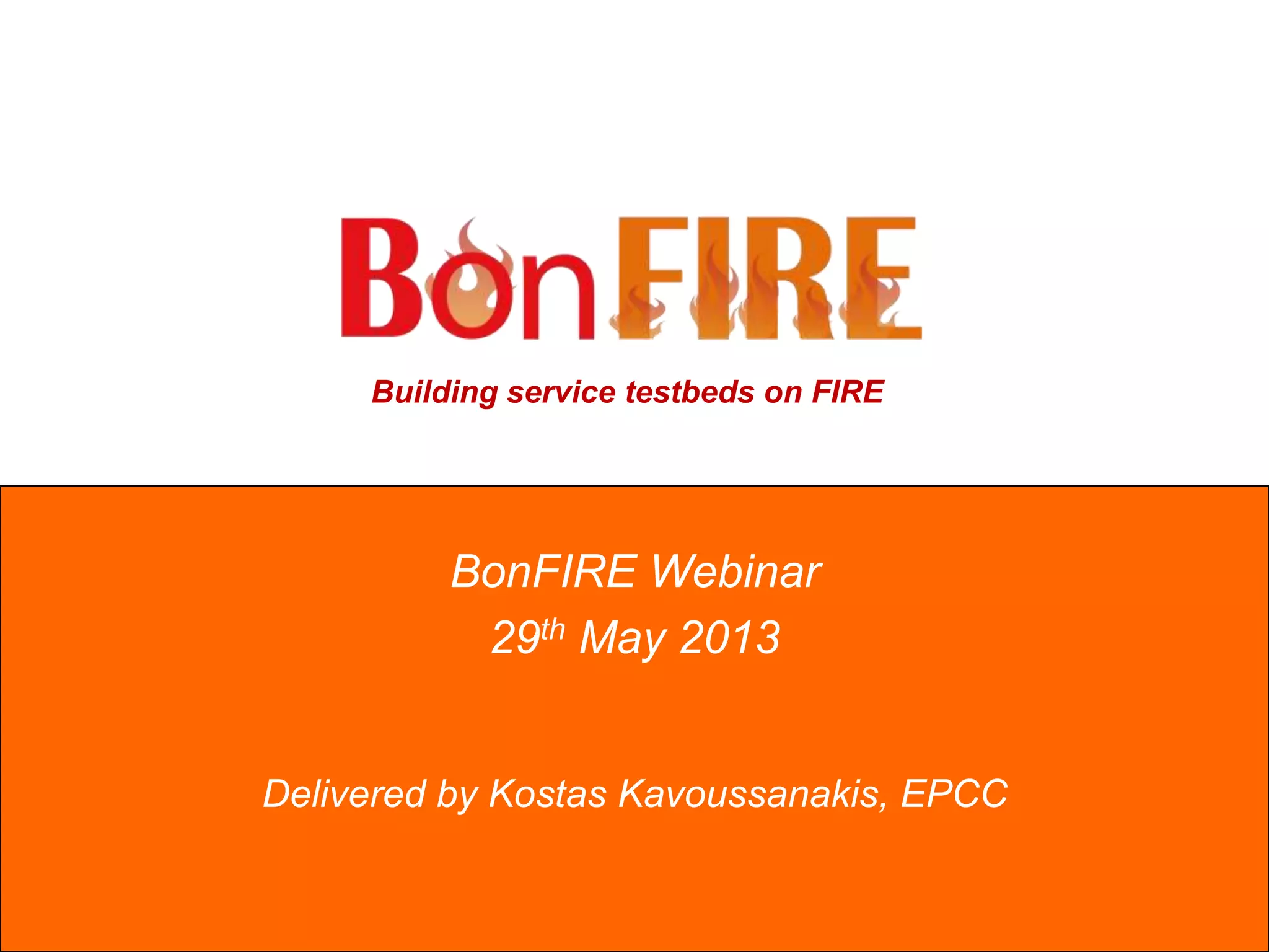 The document outlines the procedures and functionalities related to building service testbeds on the Bonfire platform, delivered in a webinar by Kostas Kavoussanakis. It includes information on the experiment lifecycle, prerequisites, resource management, and the use of client tools for creating and managing experiments. Additionally, it covers aspects such as monitoring, configuration, and the various testbed sites available within the Bonfire initiative.