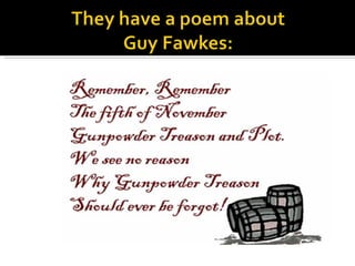 Every November 5th in England, Bonfire Night is celebrated to commemorate Guy Fawkes' failed Gunpowder Plot of 1605, where he and others attempted to blow up the Houses of Parliament and kill King James I. On this night, large bonfires are lit and effigies of Guy Fawkes are burned in remembrance, as people watch fireworks and enjoy traditional foods cooked over the fires.