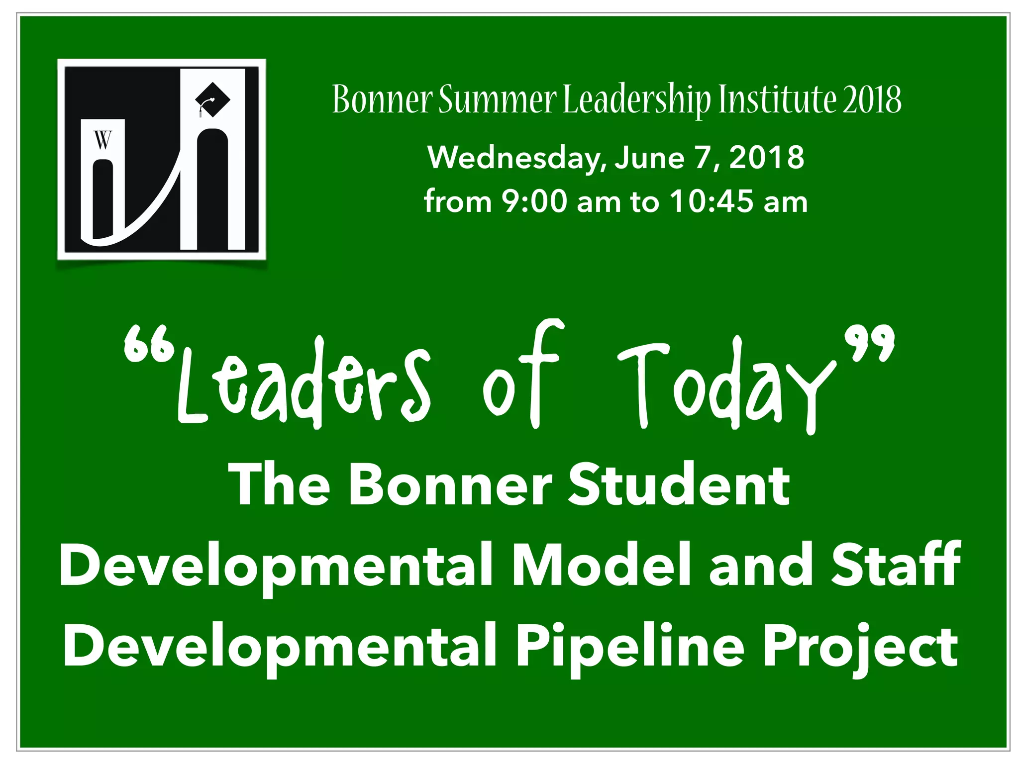 The document outlines plans for the Bonner Student Developmental Model and Staff Development Pipeline Project presentation at the 2018 Bonner Summer Leadership Institute. It will reintroduce the Bonner Student Developmental Model, introduce the Bonner Staff Development Pipeline Project, and have small group networking and discussion by student and staff levels. The document provides details on the developmental models, trainings, and professional development opportunities available for both students and staff at different levels within the Bonner program.