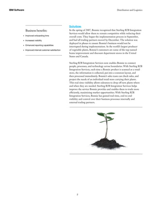 Bonnie Plants, established in 1918, has grown significantly and operates as a major national wholesaler for plants, facing challenges with manual data processing that led to errors and delays. To enhance operational efficiency and visibility, they implemented IBM's Sterling B2B integration services, streamlining their sales data processing and enabling real-time tracking of inventory needs. As a result, Bonnie has improved customer satisfaction, increased profitability, and gained the ability to rapidly onboard new trading partners.