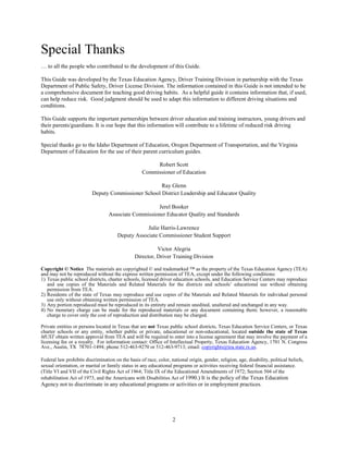 This document provides guidance for parents to supervise their teenage driver during 20 hours of additional behindthe-wheel practice required by Texas law before obtaining a provisional license. It recommends that parents model safe