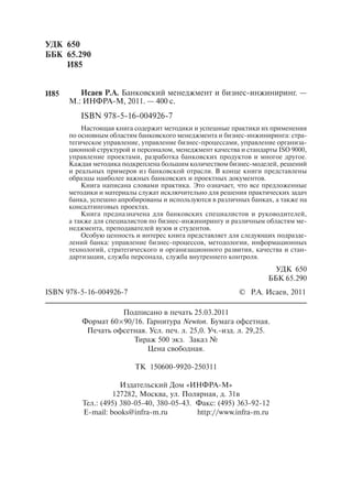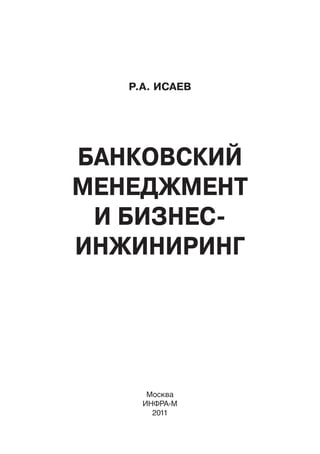 Книга Р.А. Исаева посвящена методикам и практикам в области банковского менеджмента и бизнес-инжиниринга, охватывая стратегическое управление, управление бизнес-процессами и качеством. Она содержит примеры и решения, используемые в банковской отрасли, и направлена на специалистов и студентов банковской сферы. В конце книги представлены образцы важнейших банковских и проектных документов.