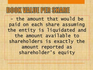 It also defines liquidation value, call price, and different types of preference shares and their dividend rights, such as cumulative, noncumulative, participating, and nonparticipating.