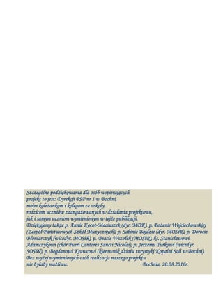i kooperacji. Podczas projektu współpracowaliśmy z: Urzędem Miasta Bochnia, Specjalnym Ośrodkiem