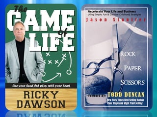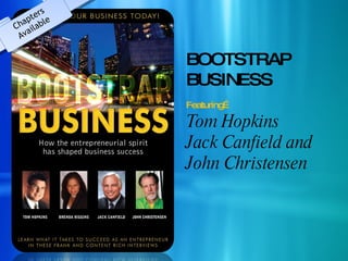The document lists various chapters and contributors for coaching and self-improvement content, featuring notable figures like Tom Hopkins, Brian Tracy, and Tony Alessandra. It highlights themes such as discovering inner strength, providing coaching, and ensuring success. Additionally, it mentions a collection of 300 books and postcards included in an 8-page brochure.