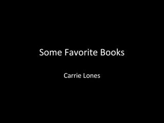Carrie Lones lists some of her favorite books including Good Omens by Terry Pratchett and Neil Gaiman, Much Ado About Nothing by William Shakespeare, The Divine Comedy by Dante Alighieri, Thief of Time by Terry Pratchett, and I Am America (And So Can You!) by Stephen Colbert.