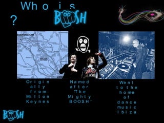 #4 BooSH states that he has many influences who play a large part in the music that he creates, these influences include Fat Boy Slim, Basement Jaxx, The Chemical Brothers and The Prodigy.The club music in Ibiza is a large influence within his music he says that Ibiza is his favorite place on the earth it has the things that he likes more than anything else in the world these things are sun, clubbing and keeping things chill, Mitchell was quoted as saying once that his ideology in life was “Party all night and sleep all day” and Ibiza is one of the only places on earth that this was possible.
