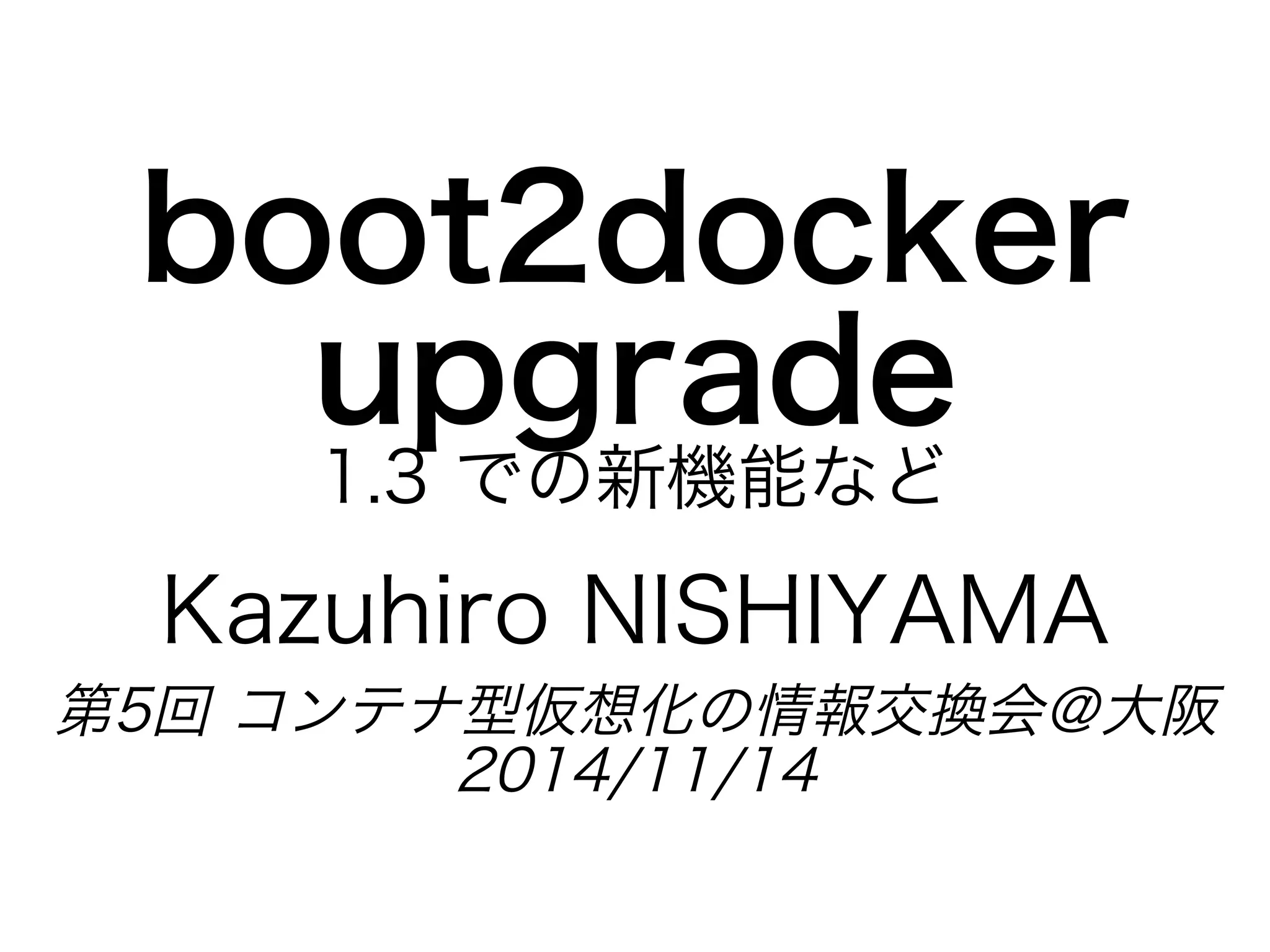 boot2docker� upgrade 1.3�での新機能など Kazuhiro�NISHIYAMA 第5回�コンテナ型仮想化の情報交換会@大阪 2014/11/14