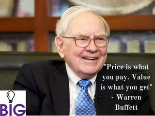 The document discusses creating a marketing plan and productizing services. It aims to have a toolkit by December 2015 to provide a marketing route map. Goals for 2016 are to lower customer acquisition costs by 50% and increase customer retention by 50%. The document discusses taking a service and making it into a tangible product by defining the core, actual, and augmented aspects. It provides examples of how to develop service packages and pricing. The document also discusses defining a unique value proposition through customer profiling, identifying problems solved, key benefits, promises, and writing it down clearly. Finally, it discusses competitor positioning maps to situate one's offering relative to others in the market.