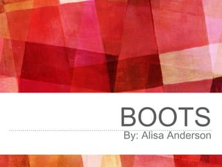 This document discusses different types of boots including fashion boots, knee-high boots, mukluks, valence boots, ugg boots, go go boots, cowboy boots, and dress boots.