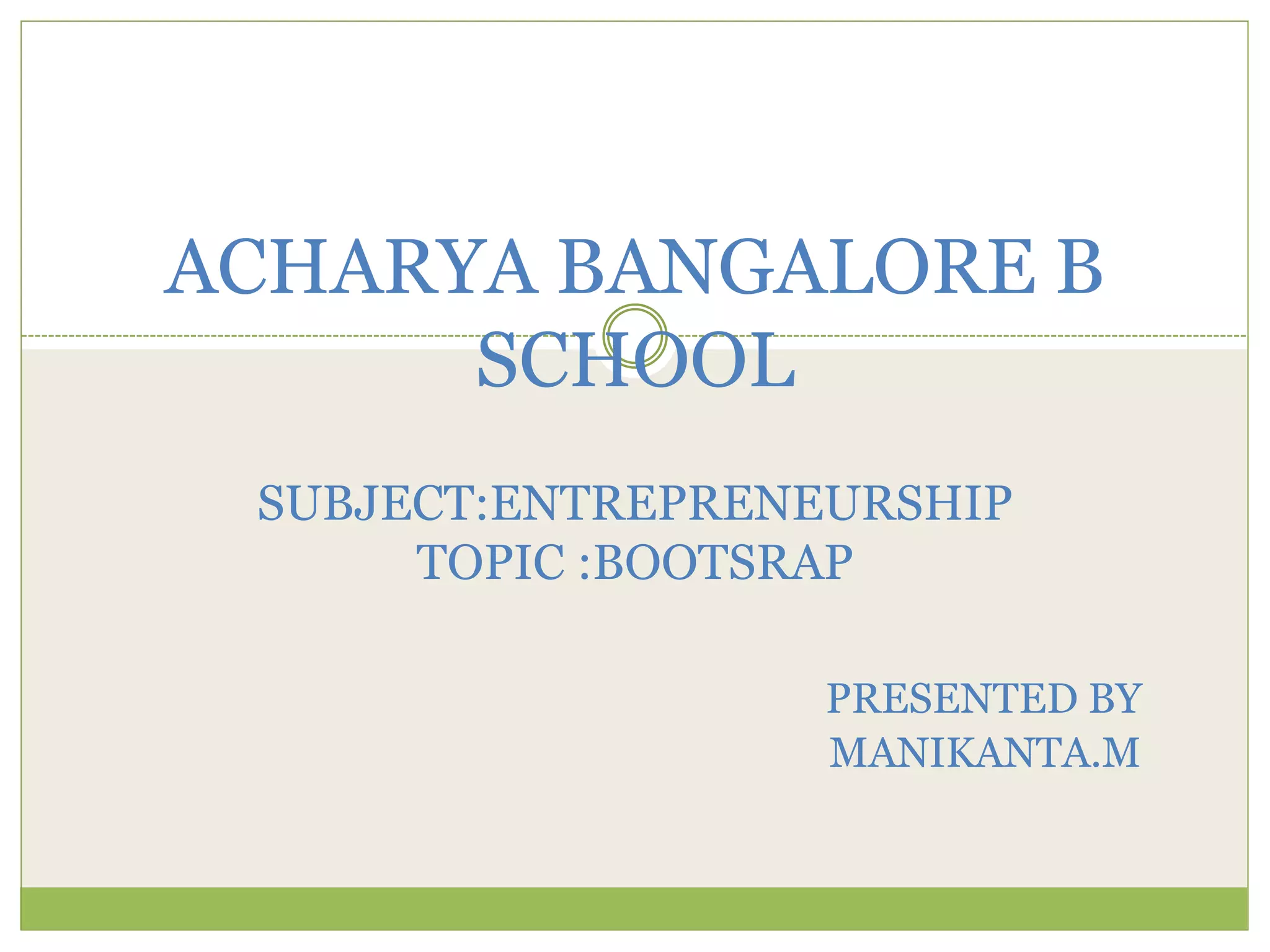 The document discusses bootstrapping in entrepreneurship, emphasizing that it involves starting a business with minimal capital, often through personal finances or revenue generated from the business itself. It outlines strategies for bootstrapping, such as testing the market, maintaining a small team, and utilizing various financing methods like trade credit and factoring. Additionally, it highlights the benefits and disadvantages of bootstrapping, along with a SWOT analysis evaluating strengths, weaknesses, opportunities, and threats in business development.