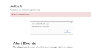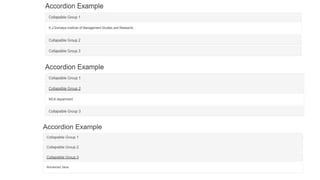 The document outlines various Bootstrap functionalities pertaining to buttons and dropdowns, including methods like 'toggle', 'loading', 'reset', and 'string' for button manipulations. It describes how to create dropdowns and dropups, manage active and disabled states, set up navigation bars with dropdown menus, and utilize pagination and list groups. Additionally, it covers Bootstrap's responsive embedding, accessibility practices, and key JavaScript plugins such as modals, dropdowns, and alerts.