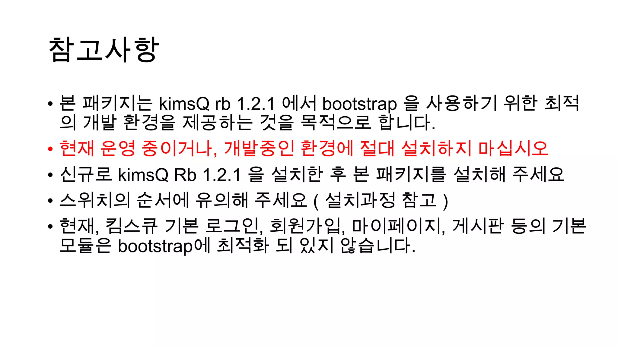 • 본 패키지는kimsQ rb 1.2.1 에서 bootstrap 을 사용하기 위한 최적