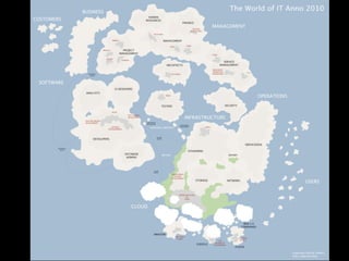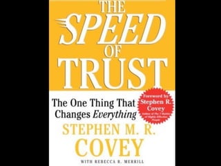 This document discusses establishing a DevOps mentality and culture by restoring trust between development and operations teams. It argues that a lack of trust leads to inefficiency, while trust increases speed and decreases costs. The speaker outlines 13 behaviors for building trust, such as talking straight, demonstrating respect, creating transparency, and keeping commitments. Fostering these behaviors can help move from self and relational trust to organizational trust. Reducing bureaucracy, politics and turnover can also increase organizational trust. Overall, the document promotes a collaborative approach focused on shared goals and understanding between teams.