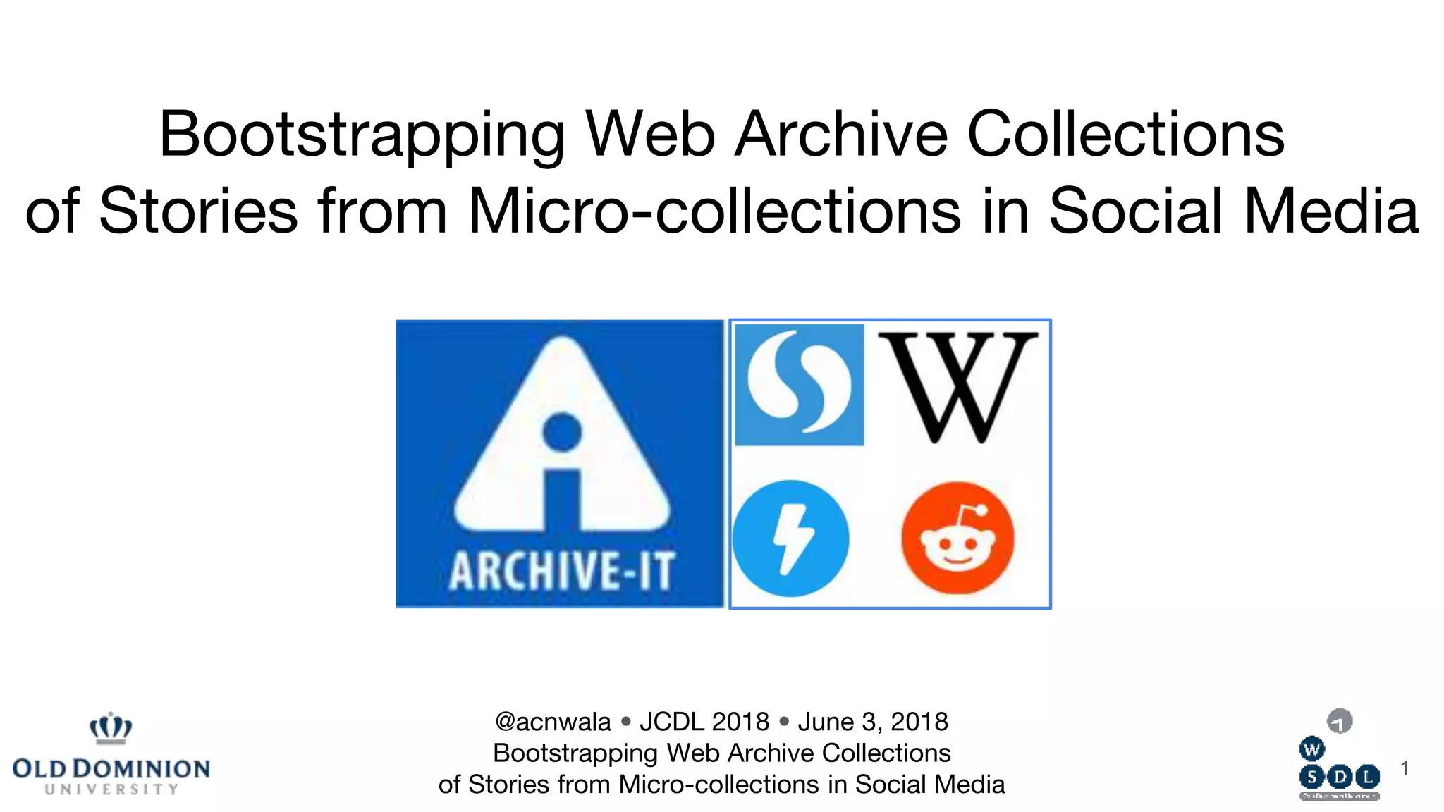 - The document discusses bootstrapping web archive collections from social media micro-collections like Storify, Twitter Moments, Reddit, and Wikipedia references. Seeds are URIs extracted from these sources.