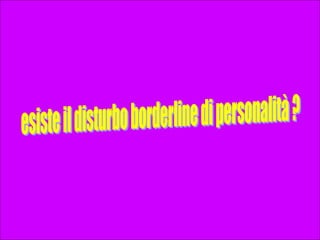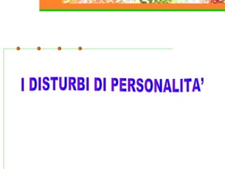 Il documento discute i disturbi di personalità, definendo la personalità come modalità durature di interazione e identificando disturbi come il borderline, antisociale e schizoide. Si evidenziano i criteri diagnostici e le manifestazioni di tali disturbi, sottolineando le implicazioni del trattamento e la difficoltà nel mantenere stabilità nelle relazioni e nell'identità. Viene inoltre esaminata l'evoluzione dei disturbi di personalità nell'infanzia e nell'adolescenza, con particolare attenzione al disturbo borderline.