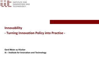 The document discusses the role of innovation policies in enhancing national competitiveness in sectors like solar energy and emerging markets, particularly focusing on the challenges faced by policymakers. It outlines factors influencing organizational innovability and the collaborative nature of research and development across various industries. Additionally, it evaluates the state of innovation support systems in countries like Zambia and Brazil, emphasizing the need for effective funding and educational frameworks to foster innovation.