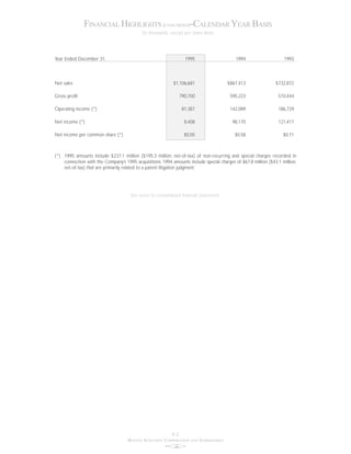 This document provides Boston Scientific Corporation's consolidated financial statements for 1995. It includes a table of contents listing financial statements and notes. It also includes a Management Discussion and Analysis summarizing the company's financial results for 1995 compared to 1994, including an increase in net sales but a decrease in net income due to acquisition-related charges. International sales grew faster than domestic sales.