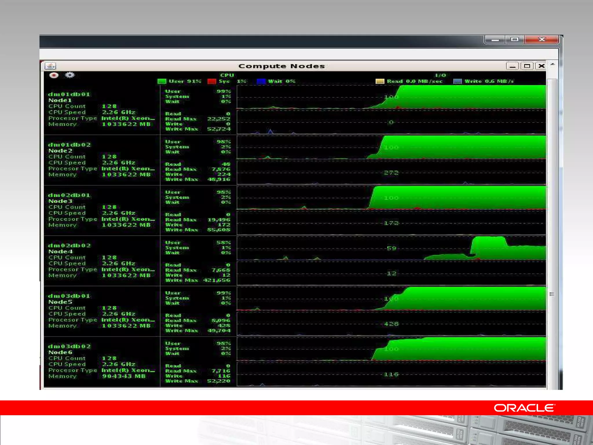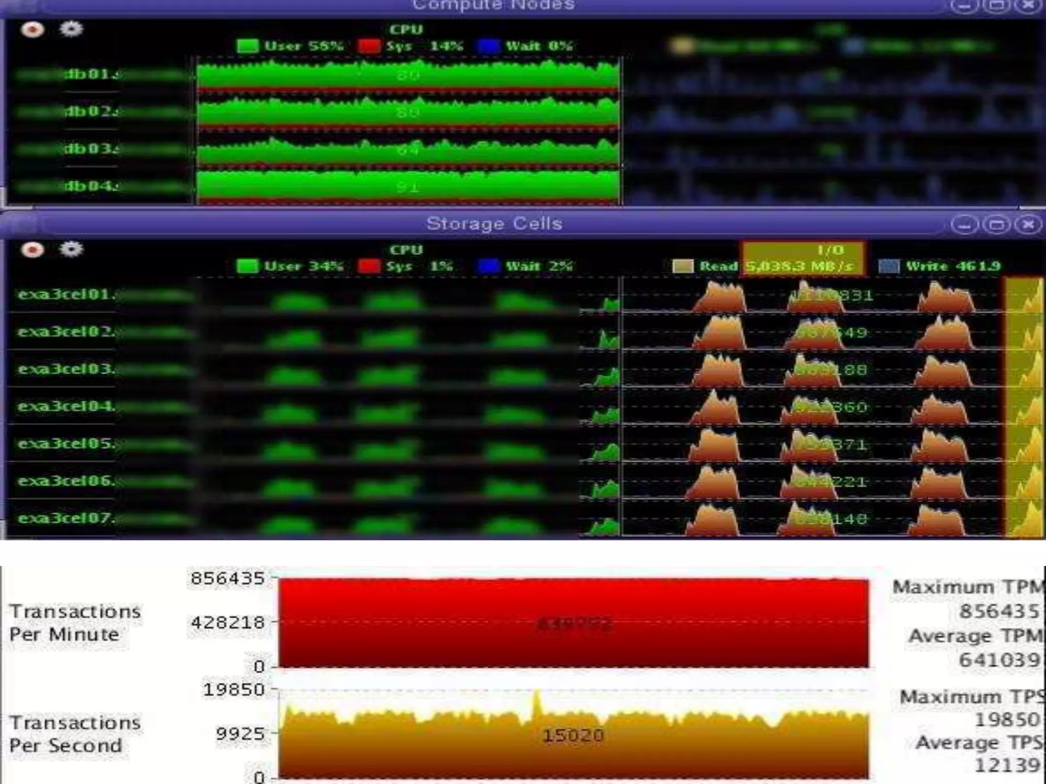 This document summarizes lessons learned from two years of benchmarking Oracle Exadata systems. It discusses how Exadata addresses bottlenecks through its use of smart storage, flash cache, and database-aware grid infrastructure. Specific examples show how Exadata was able to successfully handle mixed workloads of up to 15,000 transactions per second and data warehouse queries with little impact on performance. The document also covers monitoring tools, capacity planning techniques, and challenges addressed through techniques like dynamic remastering and leveraging flash storage capabilities.