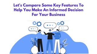 The document compares Box and SharePoint as cloud storage solutions for businesses, outlining their pricing, app integration features, customizability, and security. Box offers tiered pricing starting at $15/user/month with unlimited storage, while SharePoint starts at $6/user/month with 1TB of storage. Both platforms provide enterprise-grade security and extensive integration options, appealing to various business needs.