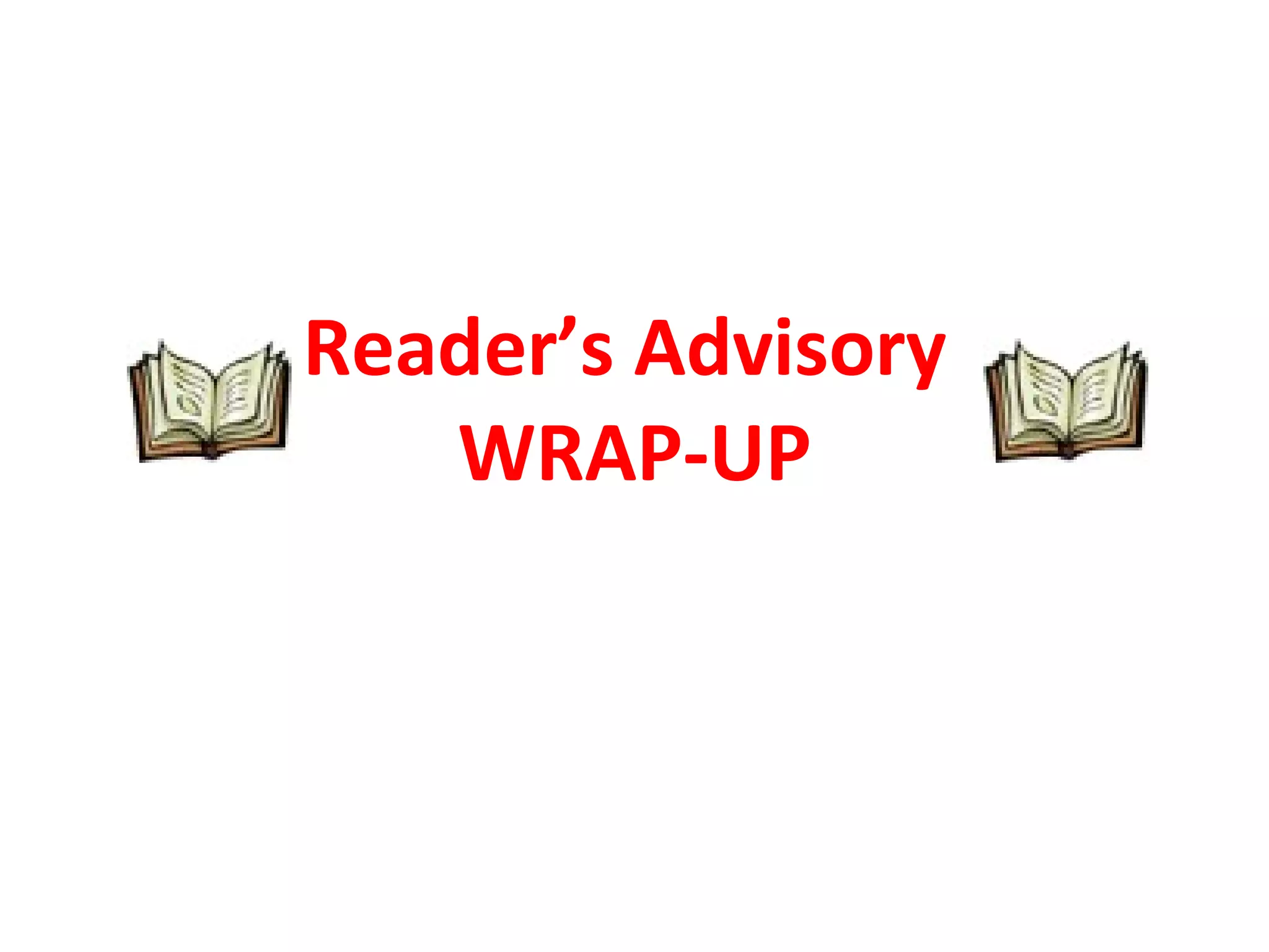 This document provides an overview of literacy and readers' advisory. It defines print literacy and 21st century literacy. It discusses multiple intelligences and developmental milestones for children ages 6-11. Tips are provided for readers' advisory practice, including asking about media interests instead of directly about books. Examples are given for providing recommendations in the genres of fantasy, mystery, and realistic fiction.