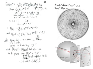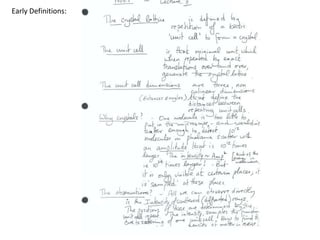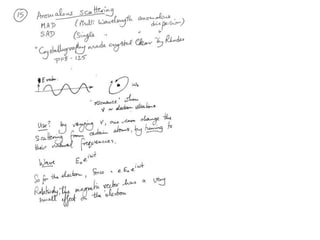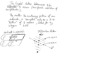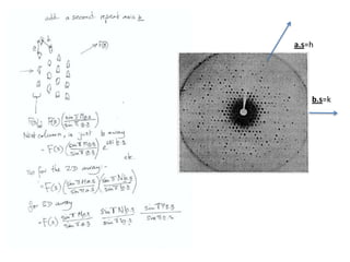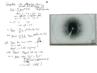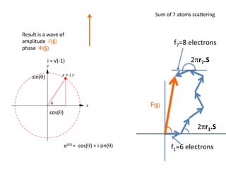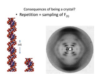 This document provides resources and an overview of topics for a course on crystallography and protein structure determination using X-ray crystallography. The course will involve crystallizing a protein, collecting data at the Advanced Light Source, and determining the protein's atomic structure. Key topics covered include X-ray scattering, the phase problem, structure refinement, and sources of errors. Online resources and contacts are provided for computing, tutorials, and beamline information.