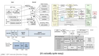 The document discusses BPF (Berkeley Packet Filter) internals, tracing examples using eBPF, and its evolution into a modern generic in-kernel execution environment. Key concepts include dynamic and static tracing, BPF program state models, and tooling like bcc and bpftrace used for observability and performance monitoring. It provides insights into parsing, grammar rules, and AST transformations involved in developing BPF tracing programs.