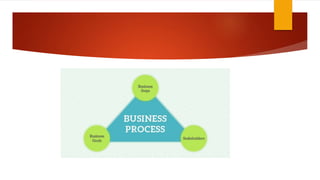 1. Business process reengineering (BPR) aims to radically redesign business processes to achieve dramatic improvements in areas like quality, output, cost, service, and speed.