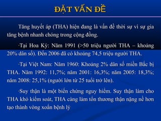 Nghiên cứu khảo sát biến chứng thận ở bệnh nhân tăng huyết áp điều trị ngoại trú tại Bệnh viện Lão khoa Trung ương nhằm xác định tỷ lệ microalbumin niệu và các yếu tố liên quan đến nó. Tăng huyết áp đang gia tăng nhanh chóng và suy thận là một biến chứng nguy hiểm, khó kiểm soát. Mục tiêu nghiên cứu là góp phần chẩn đoán sớm biến chứng thận ở bệnh nhân tăng huyết áp.