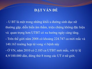 Nghiên cứu về u buồng trứng thể giáp biên tại bệnh viện K cho thấy đây là một loại u phổ biến ở phụ nữ, với tỷ lệ sống cao và phần lớn bệnh nhân được chẩn đoán ở giai đoạn đầu. Phẫu thuật là điều trị chính, có thể kết hợp hóa trị ở giai đoạn tiến triển, và khả năng tái phát tương đối thấp. Dữ liệu cho thấy nồng độ CA 125 có thể là yếu tố quan trọng trong chẩn đoán và theo dõi điều trị.