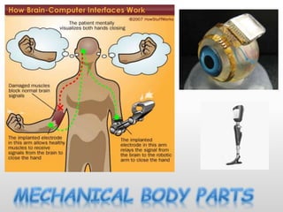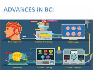 Brain-computer interfaces (BCIs) are emerging technologies aimed at creating direct communication between the brain and computers, facilitating functions like restoring sensory abilities. The history of BCIs began with early research in the 1970s and significant milestones include the first EEG recordings by Hans Berger in 1924. Various BCI approaches exist, ranging from invasive methods to non-invasive techniques, each with pros and cons, and while the technology holds promise for aiding individuals with disabilities, ethical concerns and technological limitations remain prevalent.