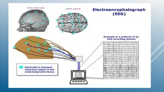 The document discusses brain computer interfaces (BCI). It begins with an introduction to BCI, explaining that it allows signals from the brain to direct external activity like controlling a cursor. It then discusses different types of BCI including invasive, non-invasive, and partially invasive. The document also covers topics like brain waves, BCI working mechanisms, applications, and challenges in the current technology.