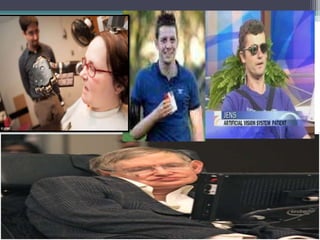 Brain-computer interfaces (BCI) allow direct communication pathways between the brain and external devices. Research on BCIs has occurred for over 20 years, with increasing experimentation in the mid-1990s using animal models like monkeys and rats. There are invasive, partially invasive, and non-invasive BCIs, where invasive devices are surgically implanted into the brain and non-invasive do not require surgery. BCI applications include ear chips, vision assistance, controlling video games and robots with thoughts. While BCI helps disabled individuals, it also has limitations like high expenses, low information transfer rates, and difficulty adapting. The future of BCI may include overcoming limitations to allow virtual reality control by thought.