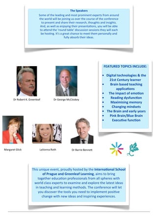 This conference aims to provide educators with the latest research on neuroscience and brain function in order to enhance learning. It will bring together education professionals from various fields with world-class experts to examine new ideas and tools to implement positive change. Sessions are designed for those working with learners of all ages. Topics will include digital technologies, brain-based teaching, emotion, memory, executive function and more.