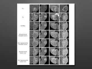 The document outlines the methodology for brain tumor detection from MRI images. It involves four main stages: pre-processing, skull stripping, segmentation, and feature extraction. In pre-processing, MRI images are converted to grayscale and filters are applied to remove noise. Skull stripping removes non-brain tissues. Segmentation uses Otsu's thresholding and watershed methods to separate brain regions. Feature extraction uses morphological operators to extract the tumor region by subtracting it from the original grayscale image.